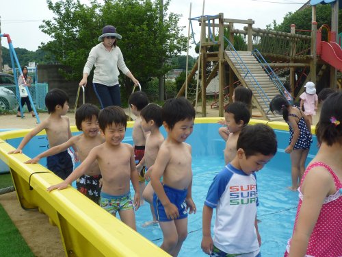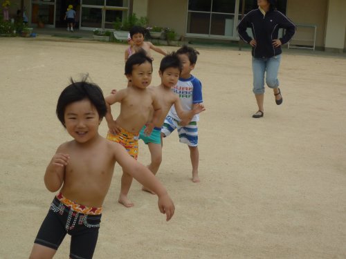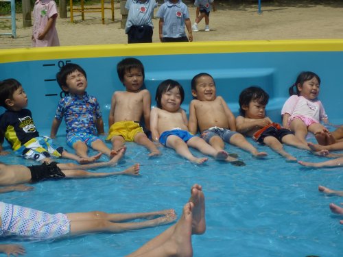 少ない水で、お天気はそれぞれでしたが、みんな元気な歓声をあげて喜んで入りました。