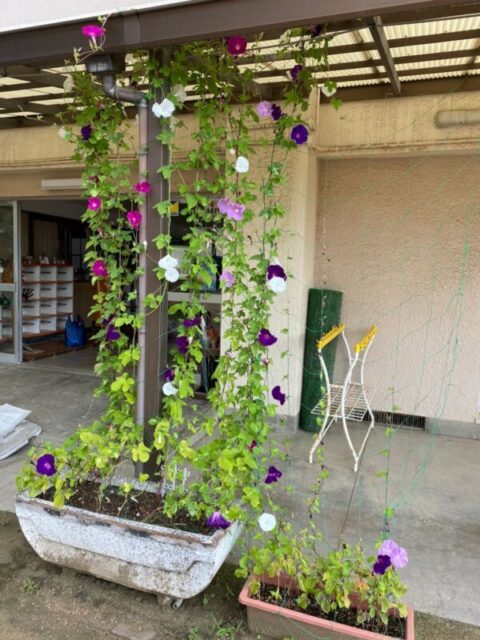1がっきにうえたあさがおがたくさんさいてきたよ!9がつ1にちにみんなにあえることをたのしみにしているよ!!!