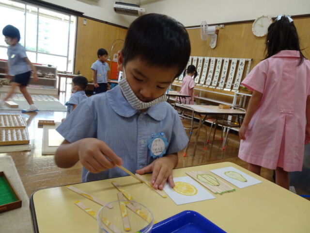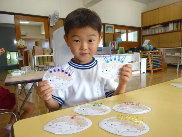おしごとも、夏休みの間に、それぞれのクラスの先生たちで、手作り教材を用意しました!!嬉しそうに、手にとり、活動する子どもの姿、細かい作業も指先をしっかり使い、真剣に取り組む姿を見ると、作ってよかったなぁ~と私たちも嬉しく思いました。