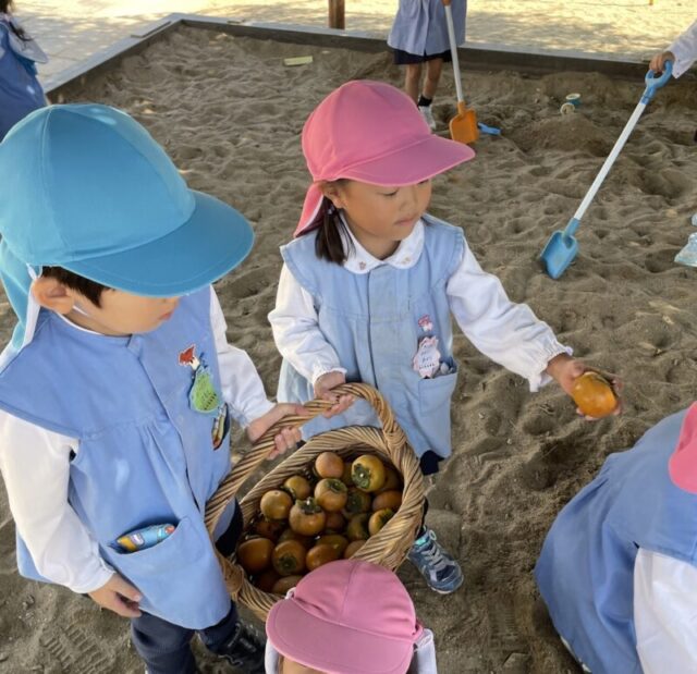 幼稚園の柿の木も今年は沢山の実を付けました。
