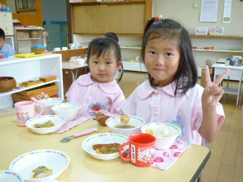 今日のメニュー:ご飯、味噌汁、魚(ばとう)のムニエル、ウィンナ