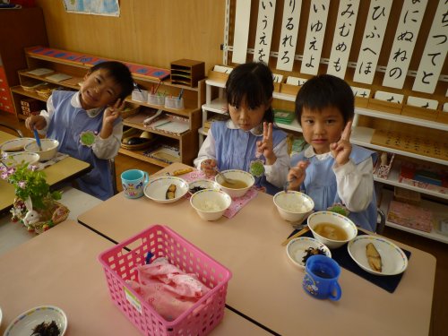 今日のメニュー:ご飯、みそ汁、ひじきの煮物、魚(サワラ)の塩焼き