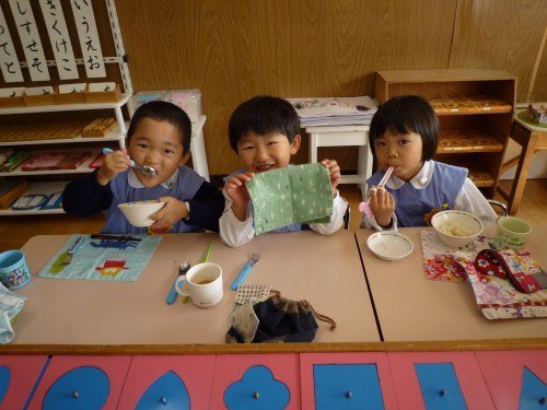 今日のメニュー:ご飯、味噌汁、根菜入りハンバーグ(大豆グルテン使用)、切干大根とちりめん の和え物