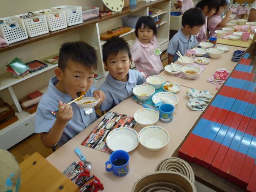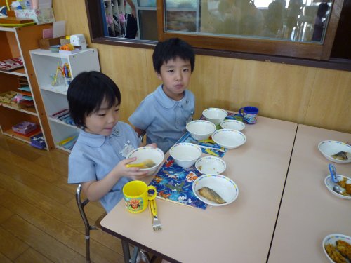 9月8日(月) 2014/9/8 今日のメニュー:ご飯、みそ汁、魚のムニエル(今日の魚はサワラでした)、かぼちゃのそぼろ煮 <もう食べ終わりそうだよ!> <お友達と食べるともっと美味しく感じるね☆> <お箸を使うのも上手になったよ^^> <おかわりをしようかな~> « 前へ 次へ »